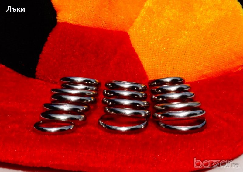 вътрешен диаметър 18. 8 мм.,19.3 мм.,19.5 мм.,19.7 мм.,19.8 мм.,20 мм.,20.4 мм.,20.5 мм.,20.6 мм.,20.9 мм.Различно тегло,според размера.Не са носени.Цена от 8 до 16 лв.,за брой в зависимост от теглото.
