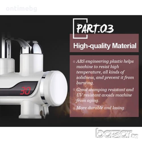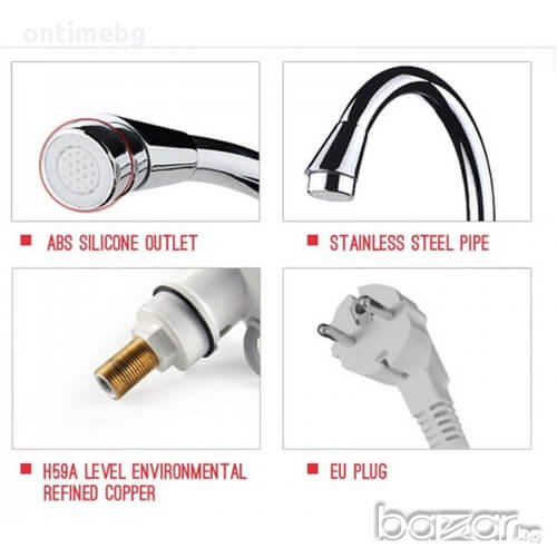 Нагревателят се предлага в два варианта: за стена и настолен и ще спести необходимостта от закупуването и търсенето на място за голям бойлер. Този проточен бойлер ще спести загубата на енергия по тръбите, защото загрява на момента точно количеството, което желаете да използвате. Без излишно загряване на огромни количества, които по-късно да се разредят и охладят, спестявайки време и електроенергия с нагревателя ще си осигурите на секундата до 60 градусова вода. Имате възможността да регулирате температурата, а този нов модел с дисплей дори показва колко точно е температурата на водата в момента на използването и. Не се колебайте, а се възползвайте и улеснете ежедневието си!