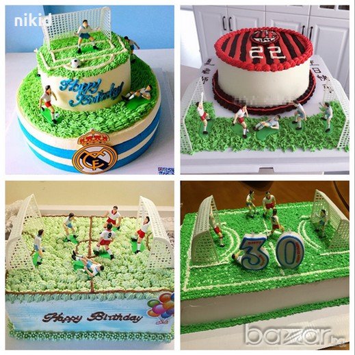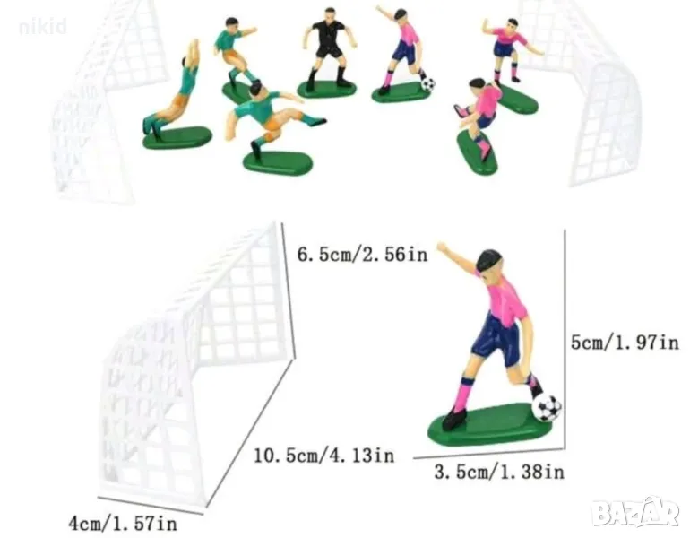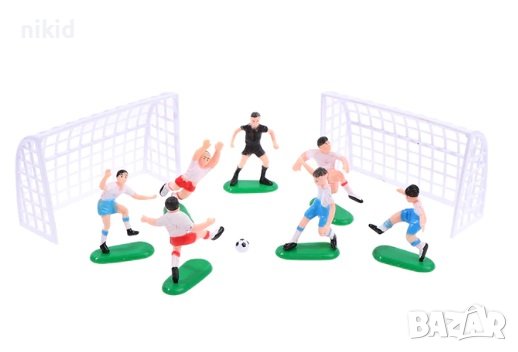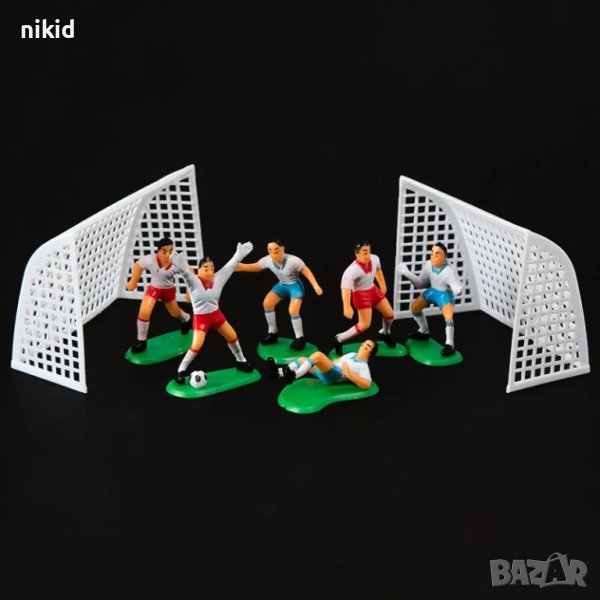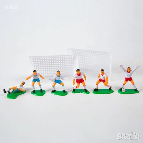 6 футболисти Сокър и врата футболно игрище фигурки PVC пластмасови игра и украса торта топер футбол → Обява 19428270