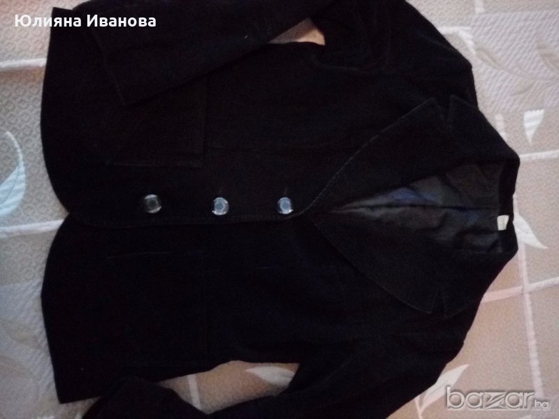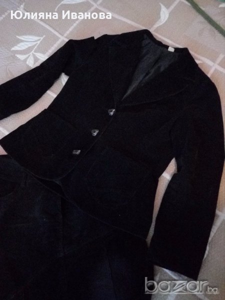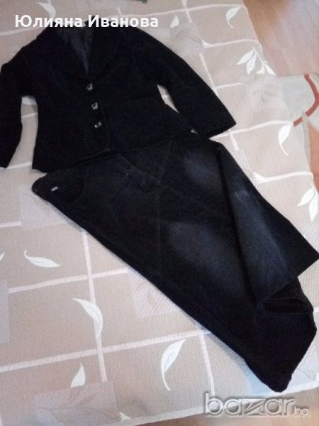 Сако и пола от черен джинсов плат. Изключително елегантно съчетание за делови дами. Подходящи се за есенно-зимният сезон. Размер 42. Нормални следи от употреба. Полата има еластичност. Могат да се закупят поотделно, като цената на полата е 12 лв, а на сакото- 13 лв. Полата я има в друга обява.
