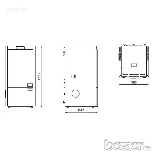 Пелетен котел Commo Compact 23 kw за етажно отопление с хармонични размери и опростен дизайн, подходящ за позициониране както в мазета, така и в жилищни помещения.