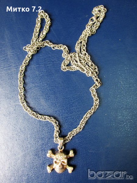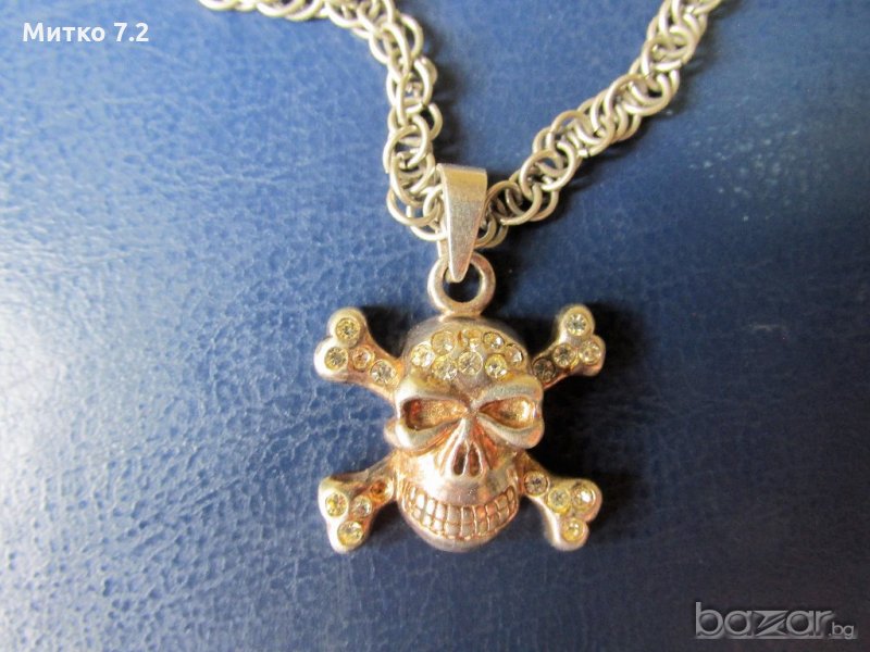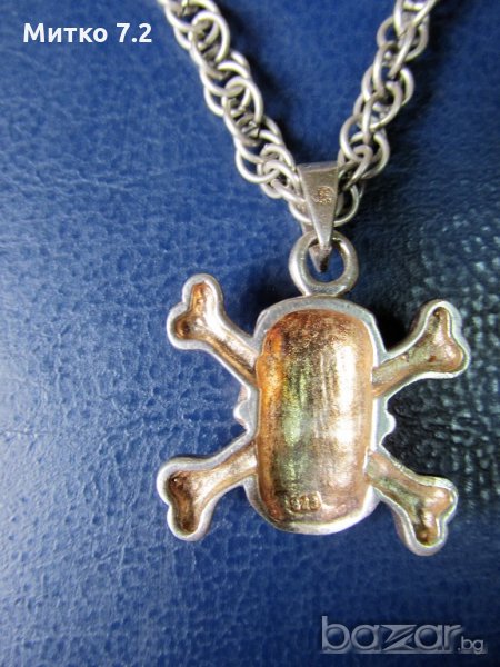 сребърен медальон - череп - 30,6 гр. размер медальон -2,6/ 2,6 см. дължина синджир - 64 см. ширина - 5 мм.