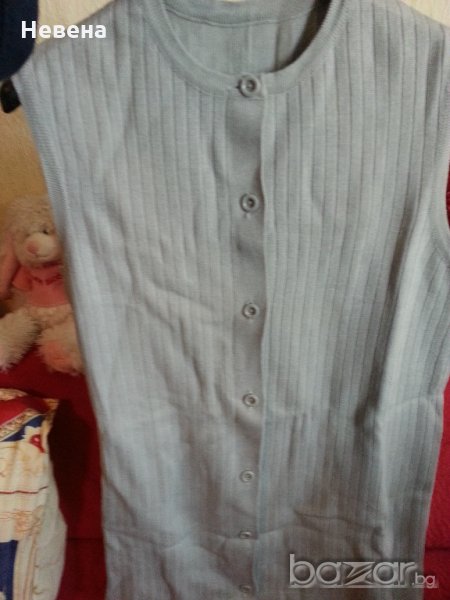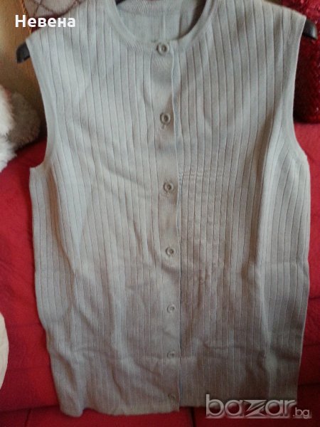 Трикотажен елек светлосив цвят, размер № 42-44 български размер - дължината е 75 см, отпред на гърдите 48 см или гръдна обиколка 94 см и най-долу ширина 52 см или 104 см общо обиколка. Отговарям на съобщения тук, изпращам с куриер с отстъпка, преглед и тест, или лично предаване в София.