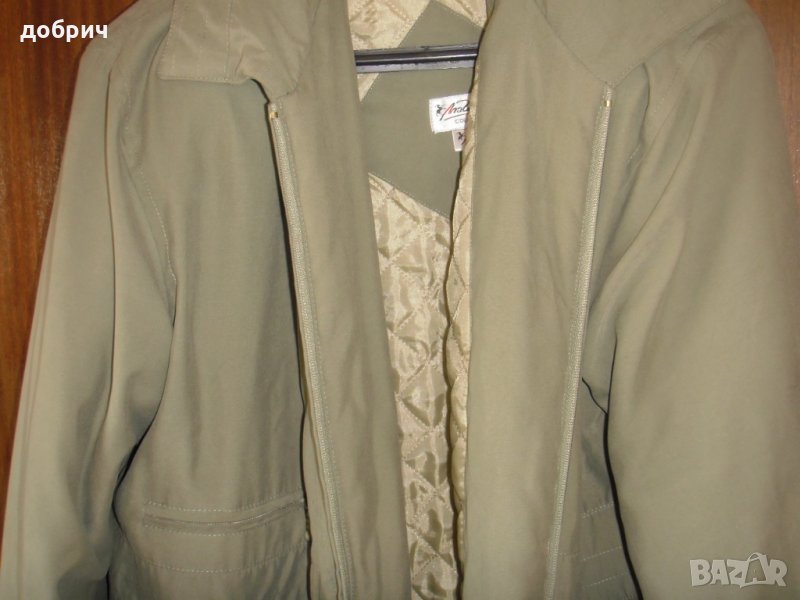 дамско палто дължина 82см, ширина рамене 51см, подмишници 62см, дължина ръкав 65см.леко ватирано.цвят маслено зелен.