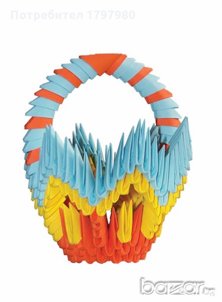 Комплектът съдържа набор от цветни листчета и подробни илюстрирани инструкции за сгъване на модулите и сглобяване на една кошничка.
