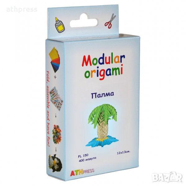 Палма - 400 модула, размер на готовия модел - 12/13 см, размер на листчетата за сгъване - 5/3 см.