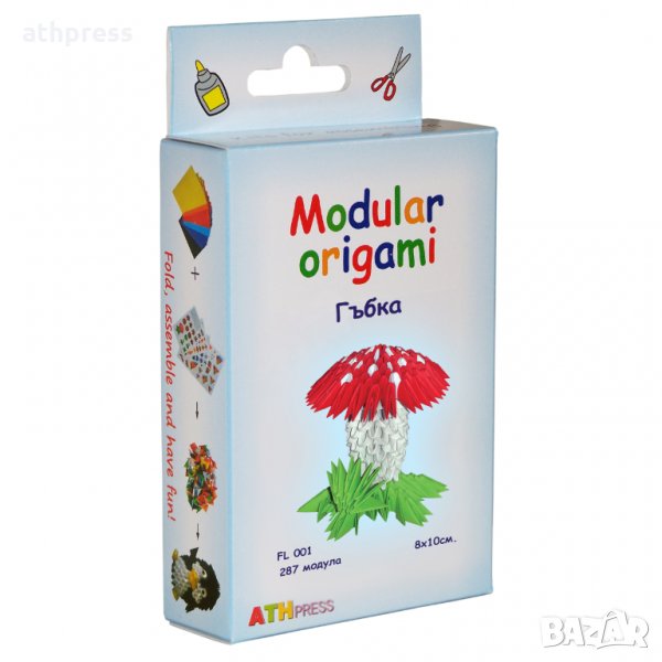 Комплектът съдържа набор от цветни листчета и подробни илюстрирани инструкции за сгъване на модулите и сглобяване на една гъбка.