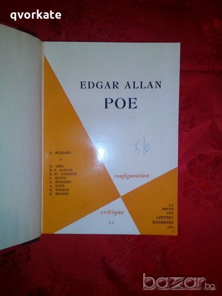 Configuration critique de Edgar Allan Po - Claude Richard,1969г.,/Критична конфигурация на Едгар Алън По - Клод Ричард/изд.Франция,на френски език,състояние отлично-8.00лв.