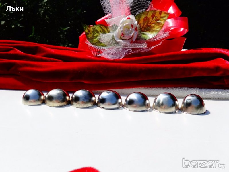 Продавам старинни сребърни полусфери,сребърни елементи,общо 7 броя,ръчно изработени от сребро проба 925.Общо тегло 56 гр.Диаметри от 37 до 32 мм.Цена 40 лв.,за брой.Цена за всичките 280 лв.