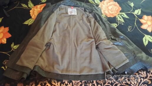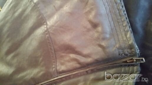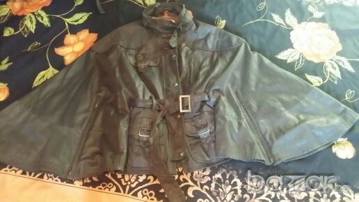 Кафяво плат имитиращ кожа .Невероятен модел с ципове под ръкавите стои като пелерина с топла подплата Без забележки като ново