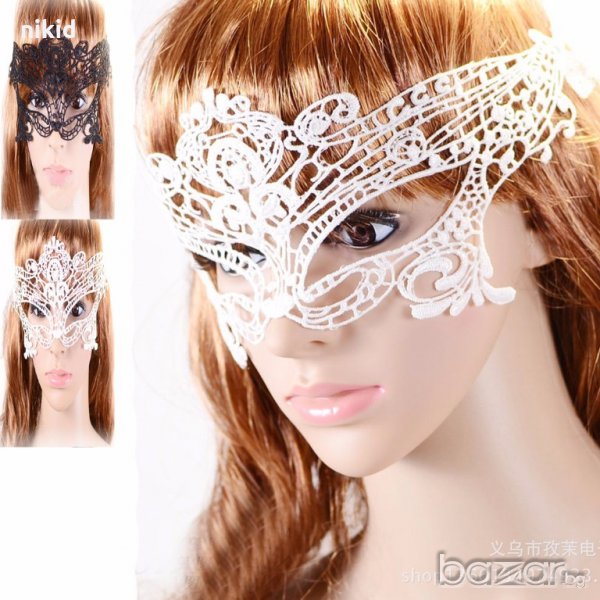домино бяла дантелена маска дантела за лице очи маскарад парти бал → Обява 19567623