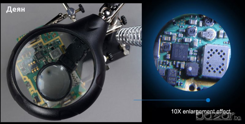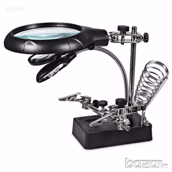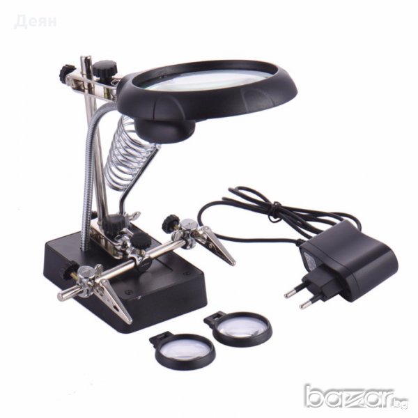 Настолна работна лампа с лупа-трета ръка,LED осветление,2щипки и стойка за поялник.