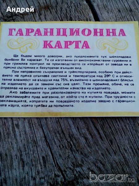 Гаранционна карта за шоколадови бонбони...:) - от соца!