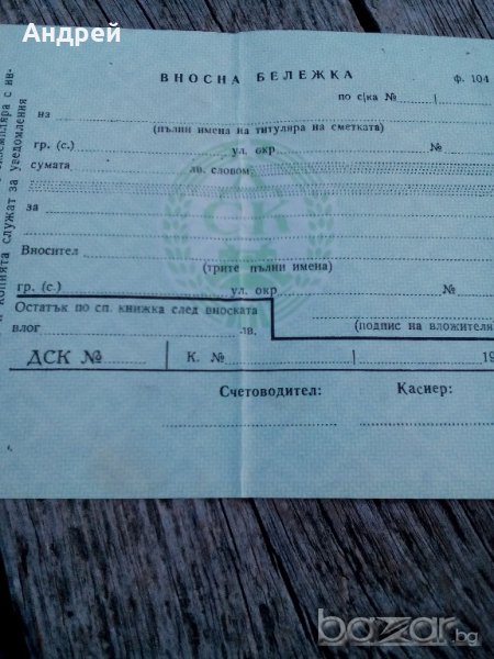 Вносна бележка/бланка ДСК от соца!