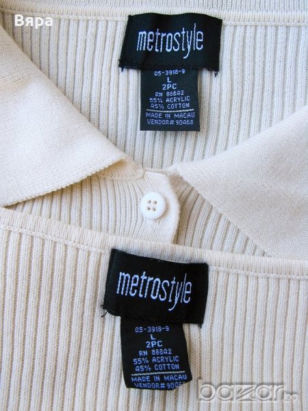 Ластичен костюм от 2 части - дълга рокля на презрамки + дълга жилетка с дълги ръкави! На специализираната марка за стилни и елегантни дамски дрехи - Мetrostyle, произведени в Макао! Спортно елегантен стил, удобни и комфортни, дизайн и кройка - подходящи за бременни и едри дами! Изключително мека, лека и приятна материя - 55% акрил, 45% памук!