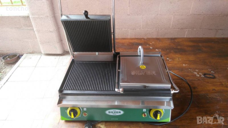 Размери на долната плоча-54х29см. Размери на горните плочи-25x23см. тостера е на два отделни кръга 2.5kW 30кг.Цена-490лв.