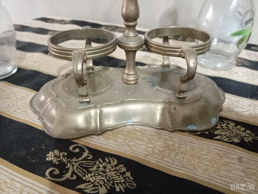 бароков оливерник,месингова стойка,стъклени шишета.
