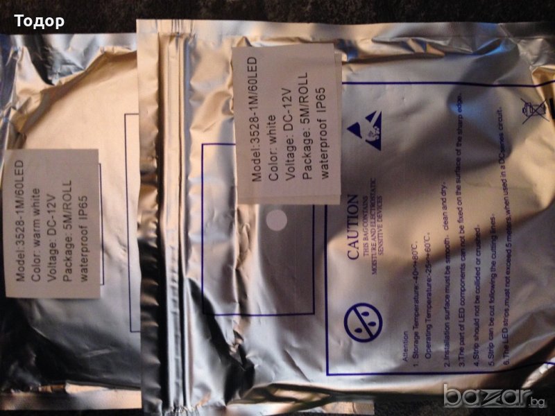 Лентата е водозащитена, на ролки от 5м. Цената на метър е 2лв. Налични в топло бяло. Диодите са модел 3528.