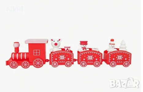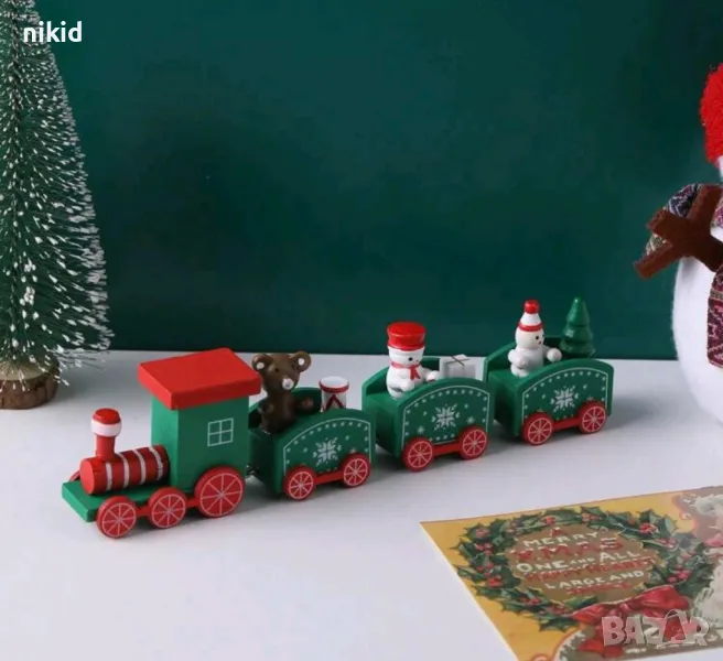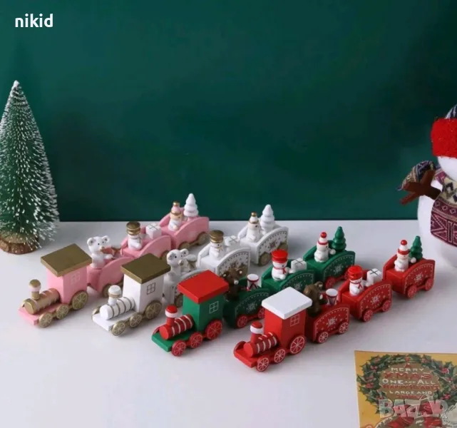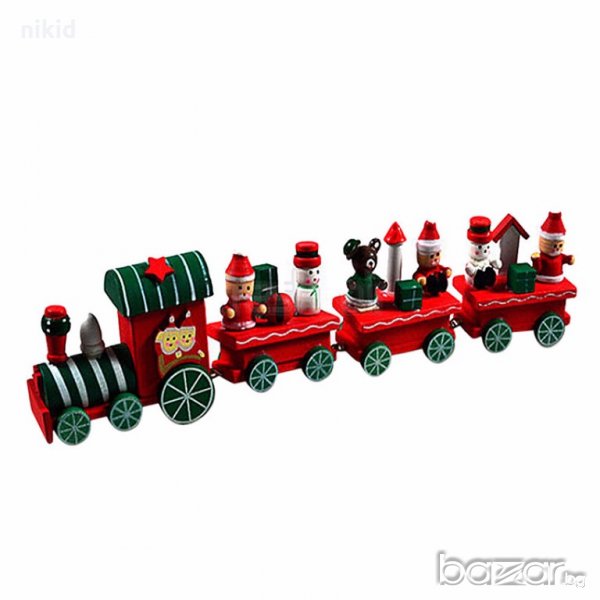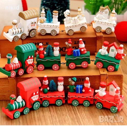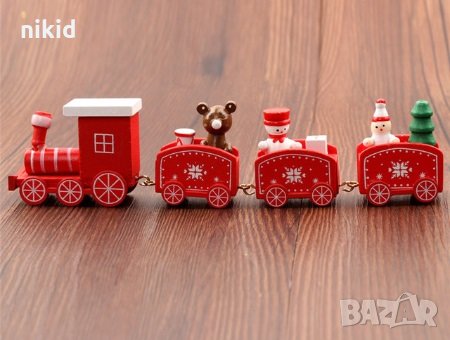 Коледен дървен пластмасов влак дървено влакче с вагони за игра и декорация украса → Обява 19613909
