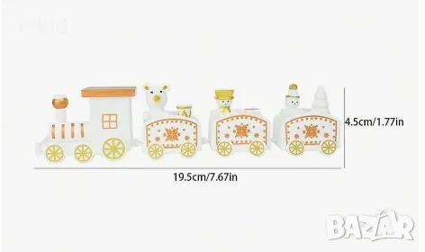 Коледен дървен пластмасов влак дървено влакче с вагони за игра и декорация украса