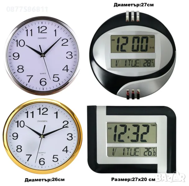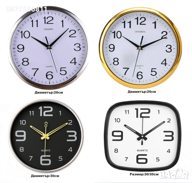 Качествени стенни часовници с плавен/ безшумен механизъм (без досадното чъкане).