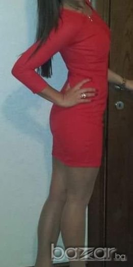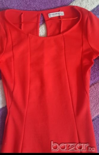 Уникална червена вталена рокля Pull and Bear, разтяга се, 95% полиестер и 5 % еластан. Стои уникално, без забележка, много удобна. Размери: дължина: 83см.,бюст: 86-90 см, талия: 64-72 см., дължина ръкав:48 см.