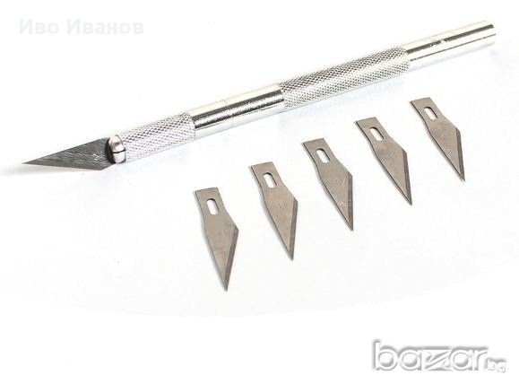 Дръжката е тяло от три навиващи се една в друга части.Сменяемият ултра тънък стоманен резец е много по-прецизен и остър от предлаганите макетни ножчета.