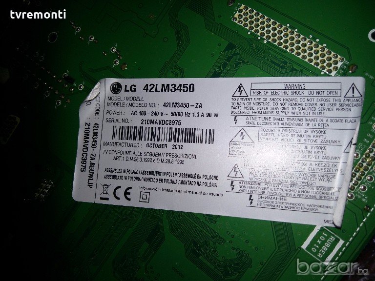 Main Board для LCD телевизора LG LG 42LM3450 LC21B, EAX64909901, EBT62036612 тесвана от нашия техник