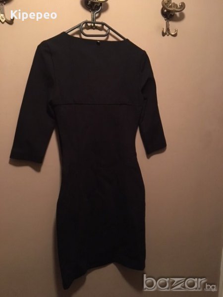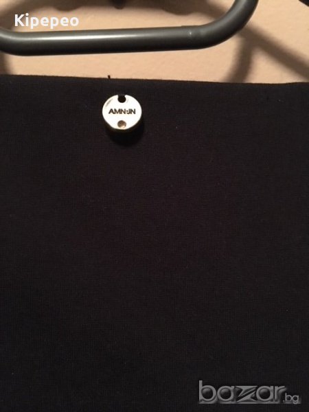 Черна елегантна рокла на Amnesia Madness National с апликация от черна кожа на предницата.