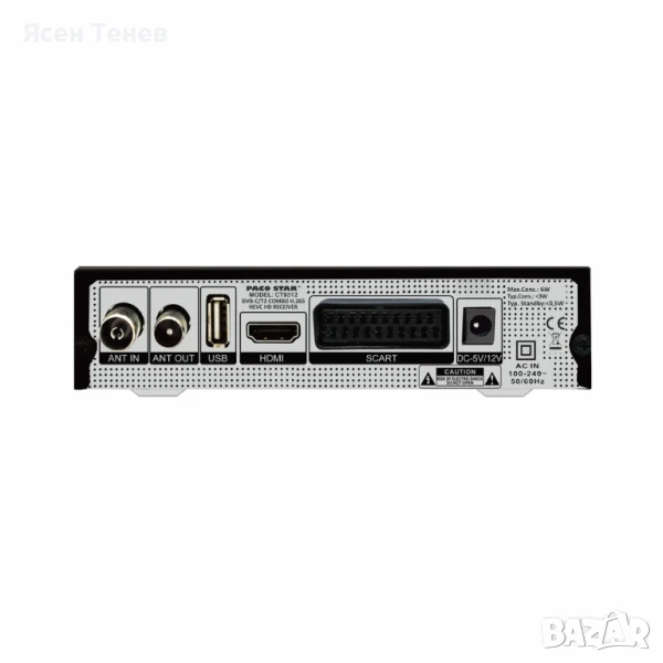 Комбиниран HD кабелен и ефирен DVB-C, DVB-T/T2 + FM приемник Paco Star CT9312 H.265 HEVC