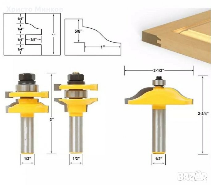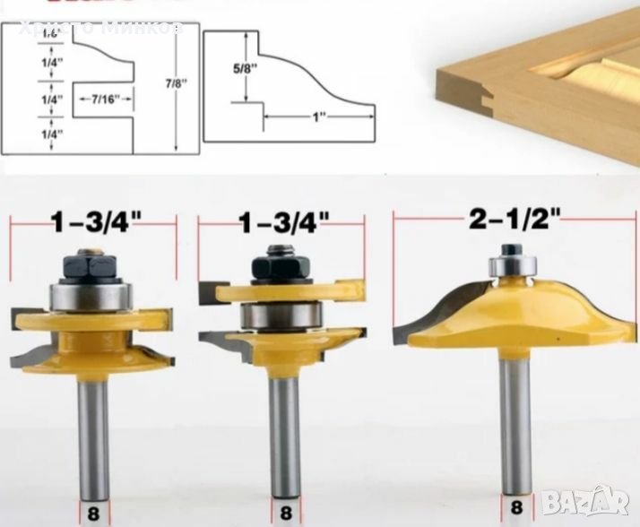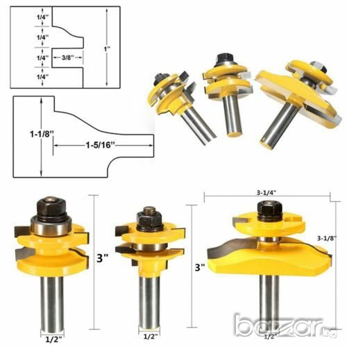 Няколко различни комплекти фрезери за изработка на таблени вратички.Опашка 8 мм,12 мм и 12,7мм .Два броя за направата на рамката и един за таблата.На последната снимка са фрезерите с опашка 12 мм.Размерите се виждат на снимките.ЗВЪНЕТЕ НЕ СЕ ПРИТЕСНЯВАЙТЕ ! ВИЖТЕ И ДРУГИТЕ МИ ОБЯВИ.