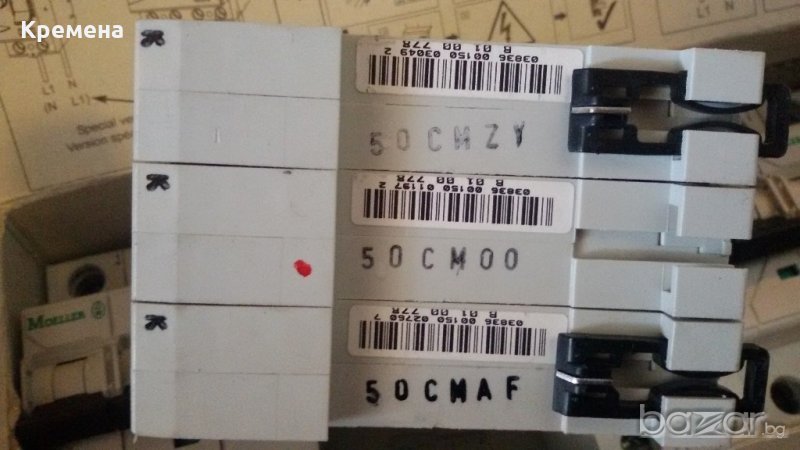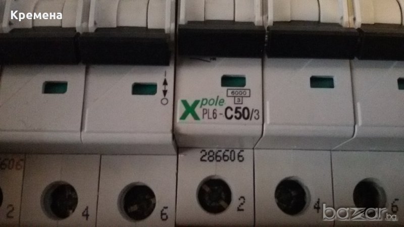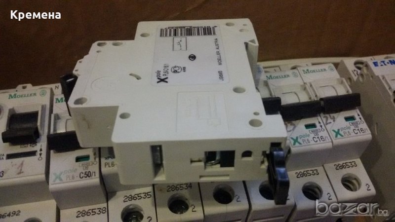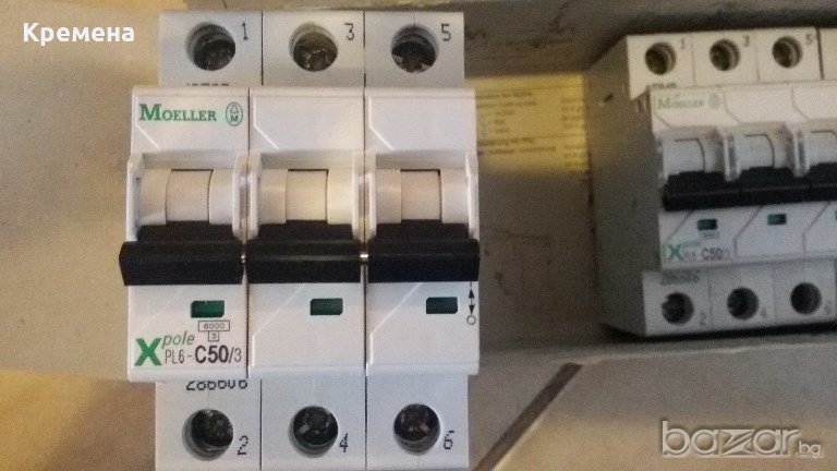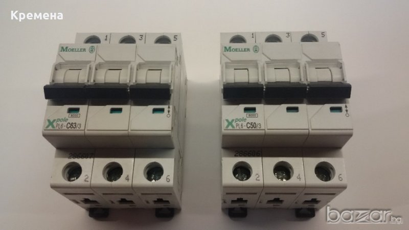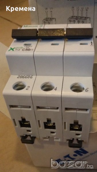 MOELLER - 3P, PL6-C50/3, автоматичен триполюсен прекъсвач 50А, нови, номинална изключвателна възможност 6кА, характеристика С, 2 броя, цена 30лв/брой.