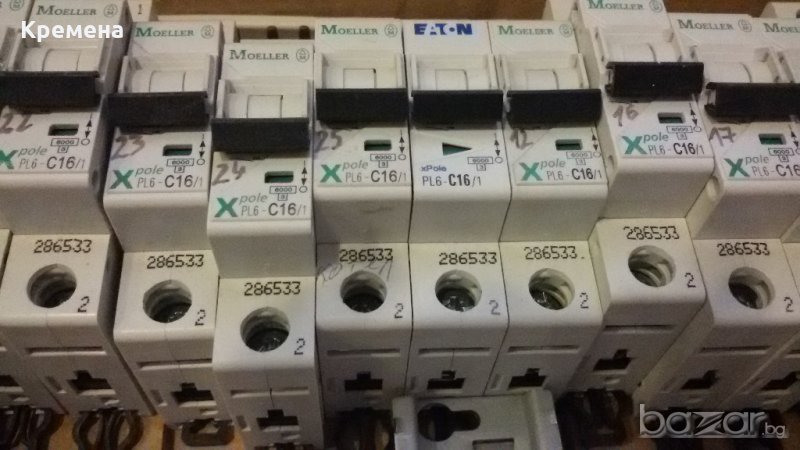 С16/1 - PL6, автоматичен еднополюсен прекъсвач 16А, номинална изключвателна възможност 6кА, характеристика С, 13 броя - цена 4лв/брой.
