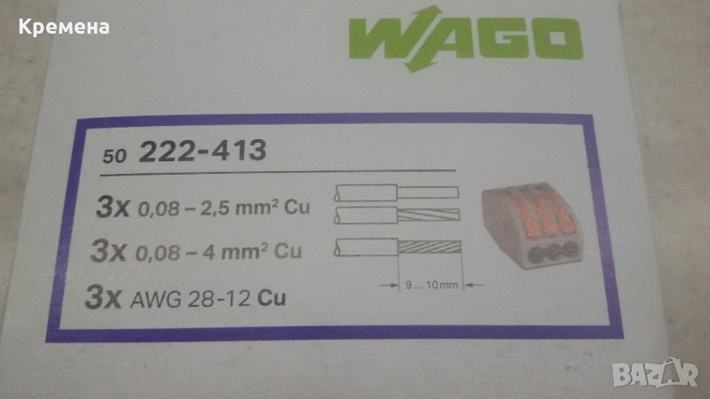 - WAGO - 221-413, 3x0,14-4mm2, налични 8 кутии, 50бр/кутия, цена 0,60лв/брой