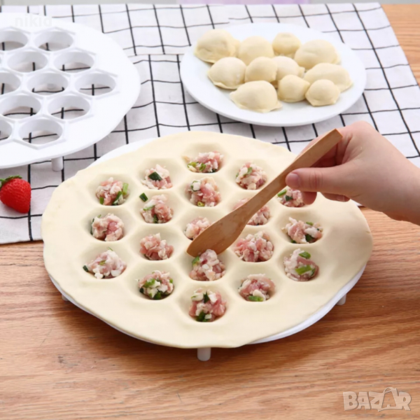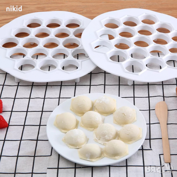 пластмасов Уред форма за правене на равиоли пелмени паста с плънка пластмасов резец 19 дупки → Обява 19715349