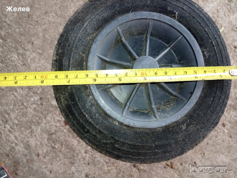размера на колелцата са 20 см. остта между гумите от пластмаса до пластмаса е 37 см. външния размер е 56 см.