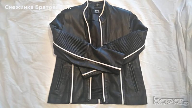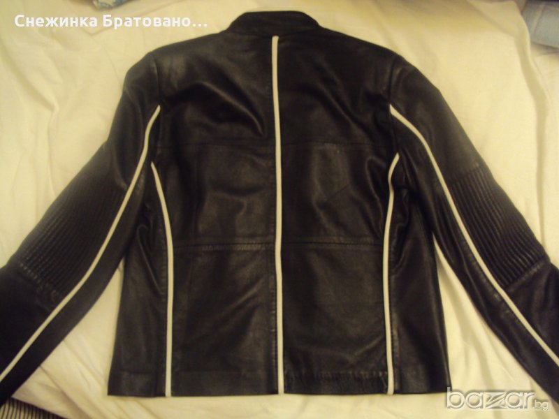 Детско кожено яке от естествена кожа. С бели кантове. Много красиво и елегантно! Купено от Италия! За дете до ръст 158 см. В перфектно състояние.Което означава НОВО като пиша НОВО, означава НОВО, защото не е носено! Обличано 3 пъти! Много стилно. Кожата е агнешка, изключително добре обработена и дава усещане за изключителна мекота! Ширина от рамо до рамо 38 см. Дължина на гърба без яката 54 см. Дължина на гърба със яката 59 см.Дължина на ръкава 60 см!