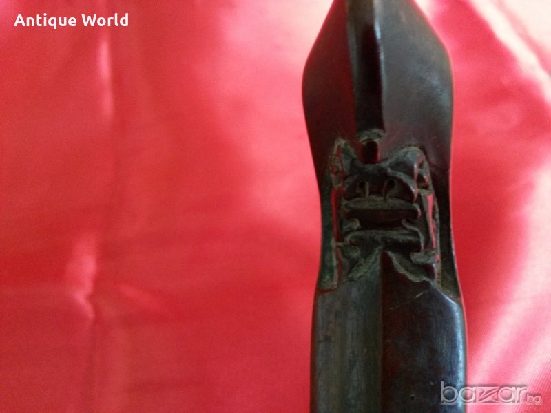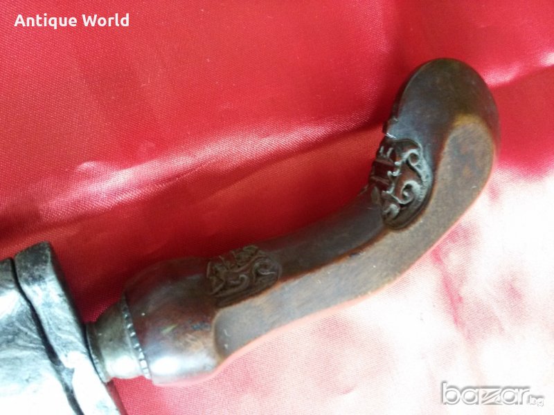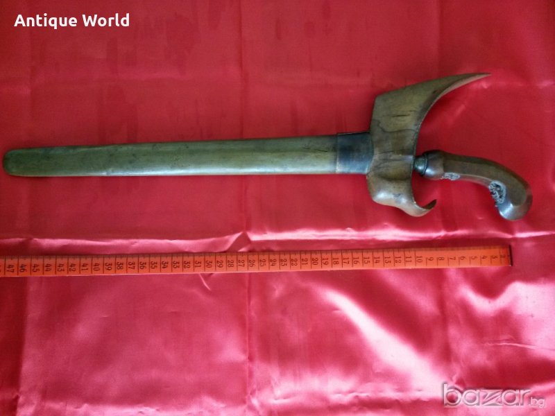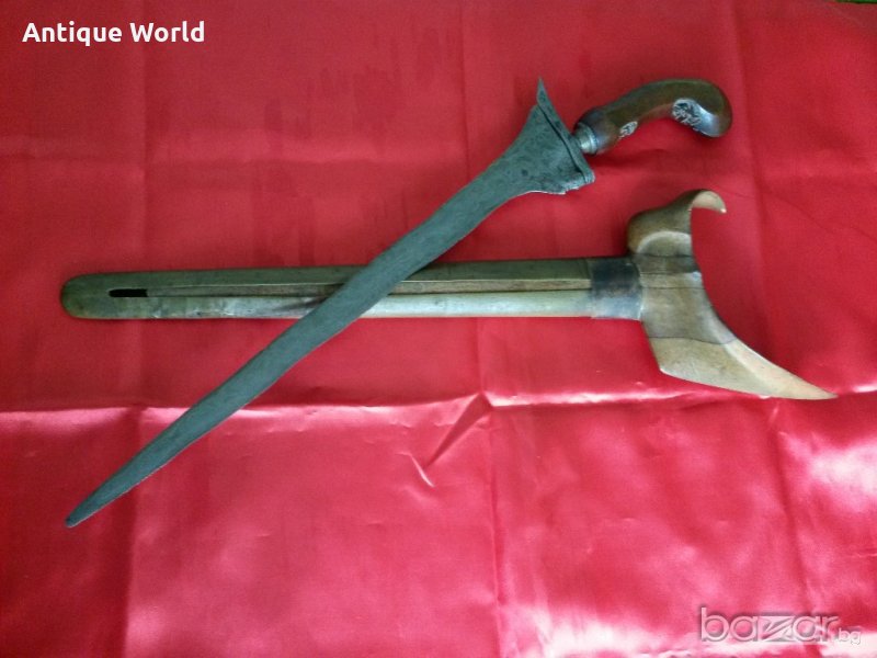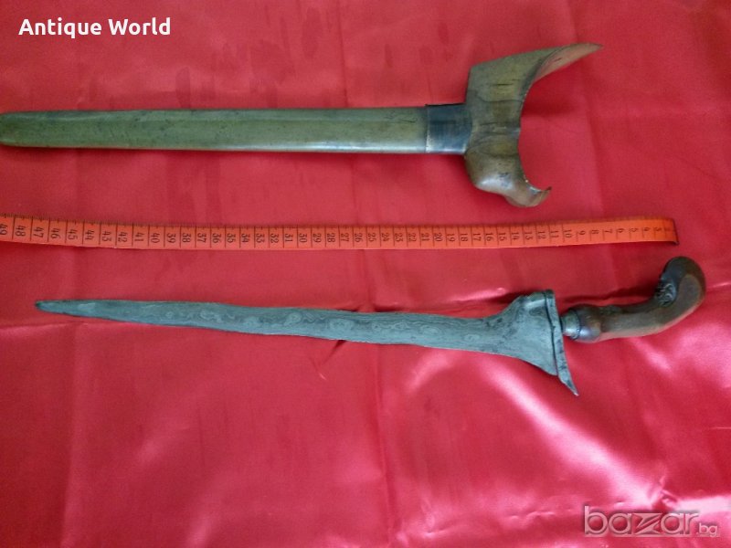 Уникална Старинна Кама КРИС , Керис от Началото на 19 Век .Дамаска Стомана ( Памор ) ,Бронзова Кания. Дръжката ( Мендак ) е от Махагоново дърво с прекрасни дърворезбички.Крис е традиционен меч на Индонезия .