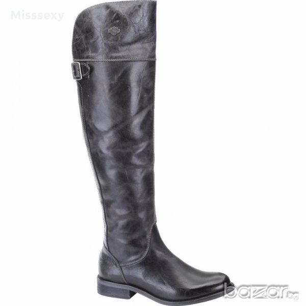 ПРОМО 🍊 HARLEY DAVIDSON 🍊 Дамски кожени ботуши над коляното в черно 35/36 номер нови с кутия → Обява 19739171