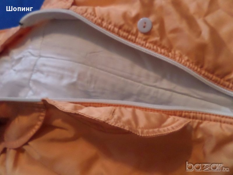 Зимен космонавт ескимос българско производство (По етикет р.80/48 за 9-12 мес.) Шушляково, в оранжев цвят, с качулката и около закопчаването, подплатен. Обличате върху дрешките и излизате спокойно в зимното време. Дължина 61 см, От чатал до рамо 42 см, гръдна обиколка 91 см в закопчано състояние. Обиколка талия 90 см. Дължина ръкав 29 см.