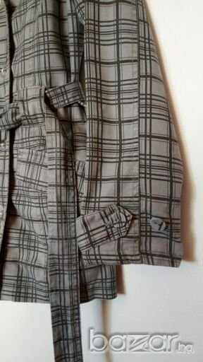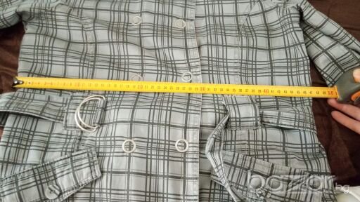 Тренча е като нов, по етикет е S размер, но според мен отговаря на М-L. За това съм снимала и размери в см.