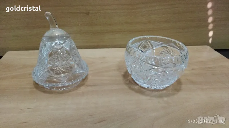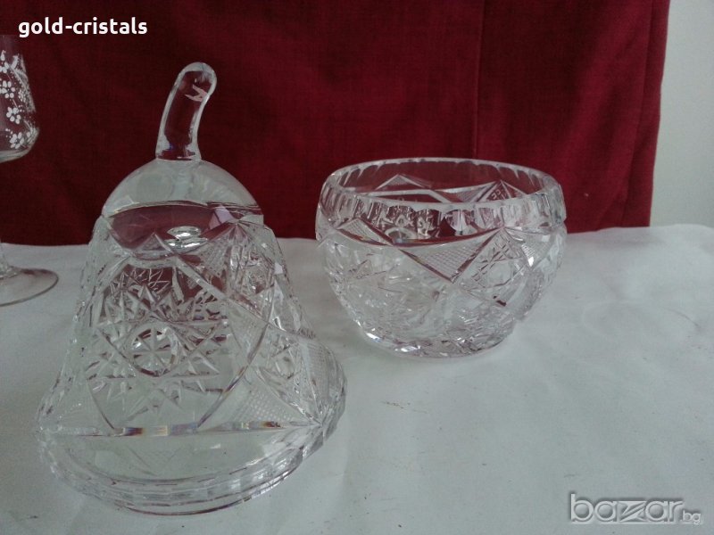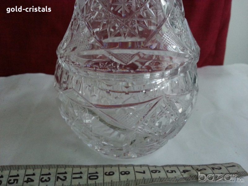 кристална захарница бонбониера купа с капак масивен и тежък кристал за лед ядки захар бонбони и др кристално гравирано стъкло стара старинна антикварна ретро арт декор винтидж колекция стари антикварни предмети обзавеждане за дома и семейството подходяща за подарък за ценители и колекционери на ок