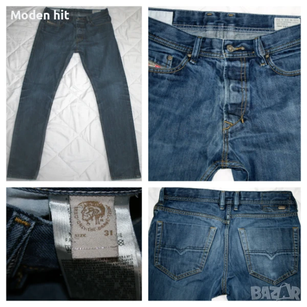 1. Цена 12,50 евро. Дънки Diesel. Външно без следи от употреба. 100% памук. По етикет са размер W31 L32. Дължина: 107,5 см., от чатала: 81,5 см. Колан: 43,5 см. Ханш: 53,5 см. Закопчаване с копчета.