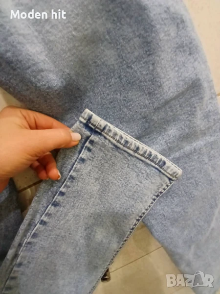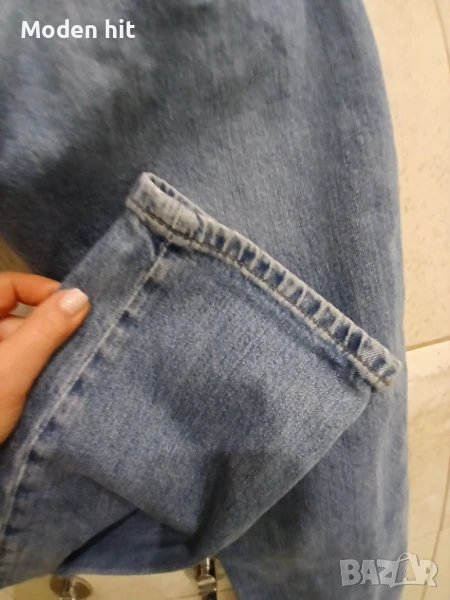 2. Цена 12 евро. Дънки Bershka. 100% памук. По етикет са размер EUR 40. Външно без следи от употреба. Дължина: 102,5 см., от чатала: 77,5 см. Колан: 42 см. Ханш: 52,5 см. Закопчаване с копчета.
