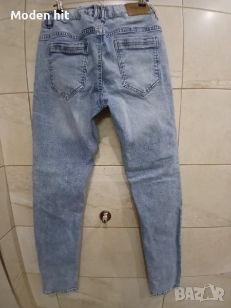 6. Цена 5,50 евро. C&A дънки за тийнеджър. Еластични, слим. С ластик и копчета за корекция на талията. По етикет са размер 176 см./14+ години. Дължина 103 см., от чатала 80 см. Талия дностранно 33,5 /може да се намали с ластика и копчетата/, разтяга се до 41,5 см. Ханш едностранно от 46,5 до 57 см. Отлични, без забележки.