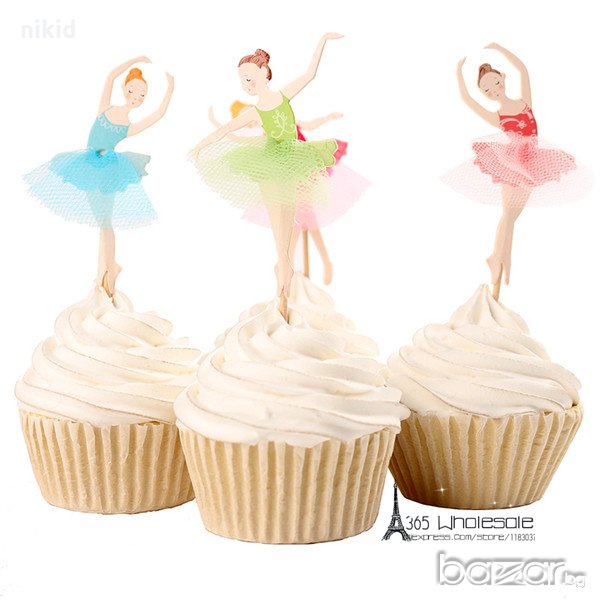 24 бр балет балерина с туту пачка тюл топери клечки за мъфини декорация и украса