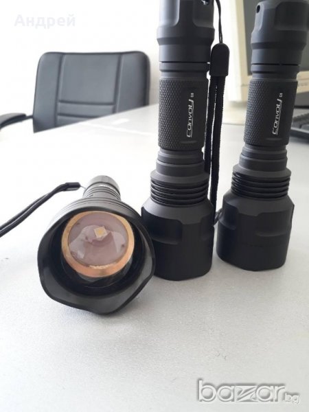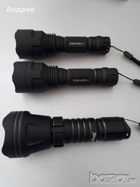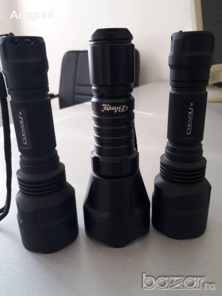 Модифициран Convoy C8 диод по желание на клиента XPL-HI V3 1A или 3C бяла или по подходящата неутрална светлина за ловци.Драйвера е A17DD-L FET+1 който прави фенера изключително далекобоен. Също така можете сами да избирате режимите на работа на фенера. Има и температурна защита. Предлагам допълнително батерии,зарядни,калъфи и анти рефлекторни стъкла.Също така имат байпас на пружините. Има готови фенери така че не се налага да чакате за изработка.Вече предлагам и с дедомнат XPG2 диод.Изключително тънък и далекобоен лъч. Също така предлагам и модифициран колиматорен Брунайт Б158Б с A17DD-L FET+1 с две групи на работа и термо защита диода е неутрален XPL-HI V3 3C цената му е 100лв. Мога да модифицирам и ваши фенери.