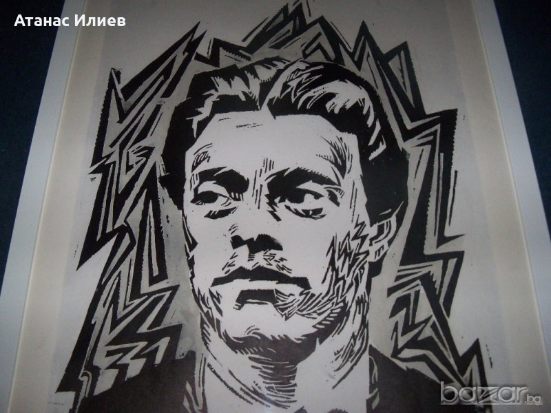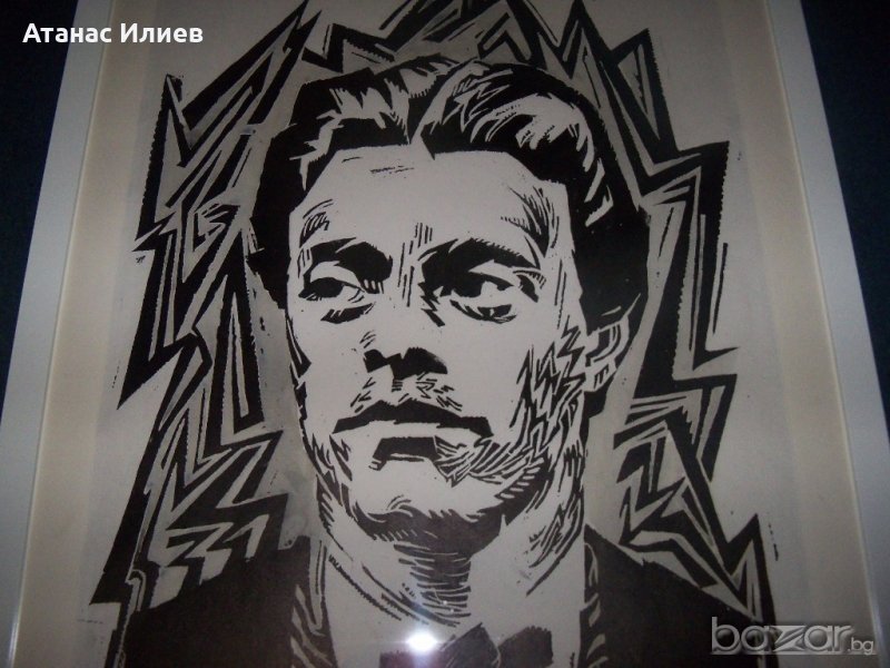 портрет на Васил Левски от известната българска художничка Петрана Клисурова. Портрета е изпълнен в графична техника линогравюра. Изключително въздействащ. Размери с рамката 50х70 см. Не е подписан, но авторството е абсолютно сигурно. Авторката е сестра на прочутия български художник Васил Бараков.