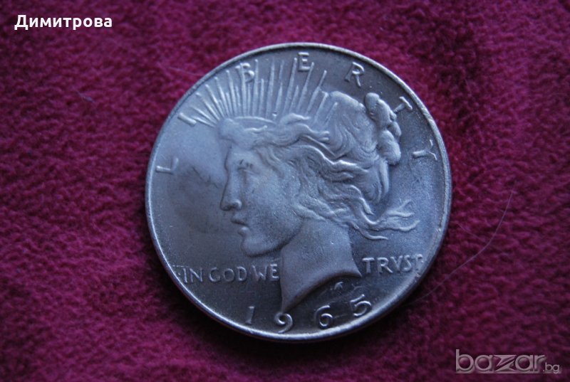 1 долар САЩ 1965.посребрена голяма монета.Много добра репродукция за попълване на колекция.пращам по куриер с опция преглед