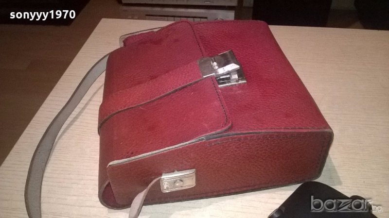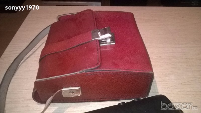 ретро камера в идеално състояние с елегантна червена чанта от естествена кожа с дръжка-21х21х8см-от днес 28.02.22г пращаме със спиди или еконт с преглед и тест след превод на капаро за куриерската услуга поради зачестили некоректни потребители-поръчки само тук в саита! по телефона и със смс не! краини цени! бартери не правиме! всеки ден нови неща-още 2-3 наши обяви тук